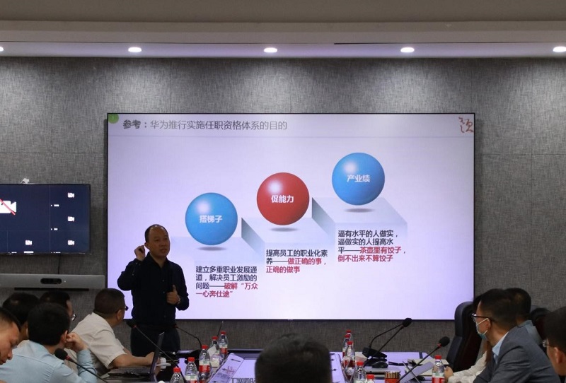 随后,云顶咨询范金老师为大家做了任职资格理念导入培训,他指出,人才管理是组织能力的核心组成元素,任职资格是人才管理的核心组成部分,任职资格管理体系是企业价值评价体系的重要组成部分。范金老师以华为为例,深入浅出地讲解了设置任职资格管理体系的重要性,并就“应该做什么、怎样做”的问题做出了详细解答,为海斯福任职资格管理体系的建立奠定基础。
